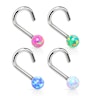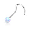 Aqui tem um prático parafuso de nariz com uma bonita opala, que de certo causará uma boa impressão. Esta pequena opala de 2 mm tem forma de bola, e está disponível em 4 cores distintas: branco, rosa, azul ou verde. Cada brilhante é único e não existem dois que sejam exatamente iguais, já que se trata de uma pedra extraída diretamente da natureza. Diz-se que a opala causa inspiração, paz interior e amor. Assim que se a sua beleza não é suficiente para si, há muitas outras razões para que leve esta joia.