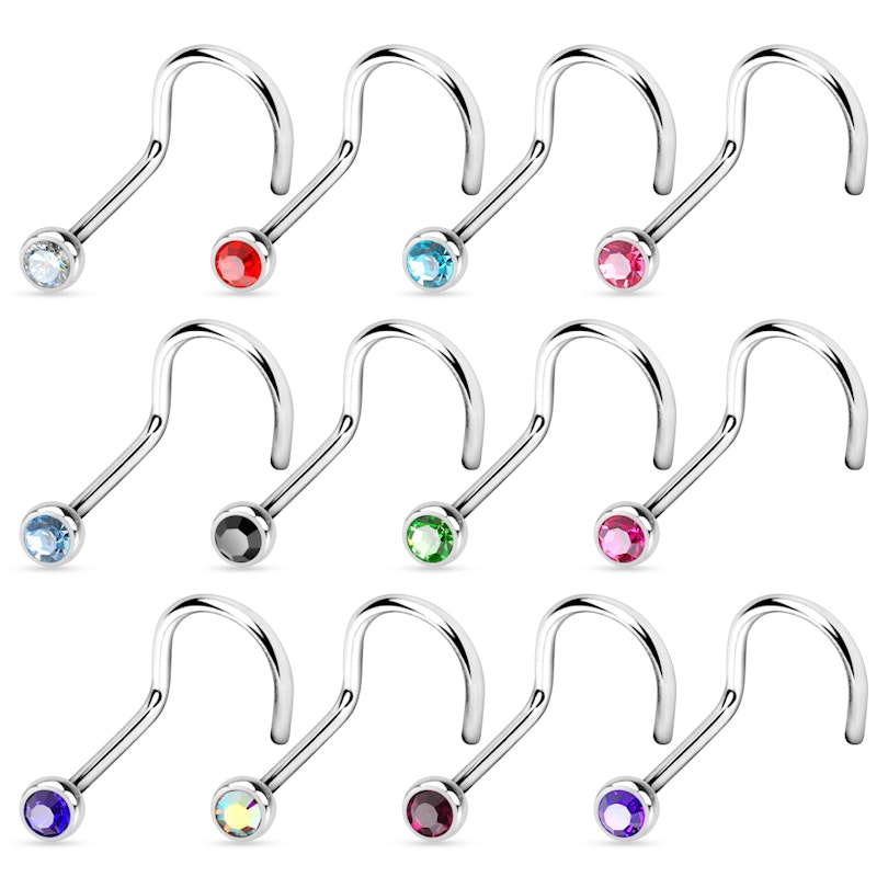 Este parafuso para o nariz é feito do melhor material do momento. titânio 23. O titânio é um material super seguro, recomendável para todas as pessoas, inclusive as que têm alergia ao níquel. Inclusive podes usar esta joia de titânio no teu novo piercing ou piercing do tragos. Esta jóia está disponível com brilhante de várias distintas cores à escolha.