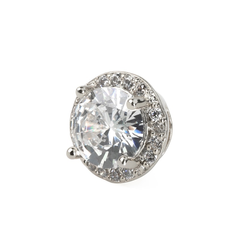 No centro da peça há uma grande pedra lapidada que reflete lindamente cada raio de luz que lhe toca. À volta da peça central existem várias zircónias pequenas e transparentes que realçam a beleza deste topo para dermal.