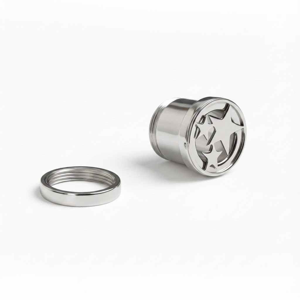Esta joia feito em aço cirúrgico é durável, à prova de água e compatível com a maioria dos tipos de pele. A rosca externa mantém tudo simples;: basta encaixares o túnel, enroscares a parte de trás e já está.