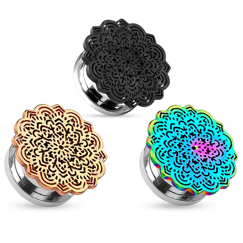 O lindo túnel está disponível em tamanhos diferentes, então você pode simplesmente escolher a que combinar mais com você e continuar sua compra. A mandala em si é um pouco maior que o diâmetro do túnel, dando a impressão que o seu alargamento é um pouco maior do que realmente é.