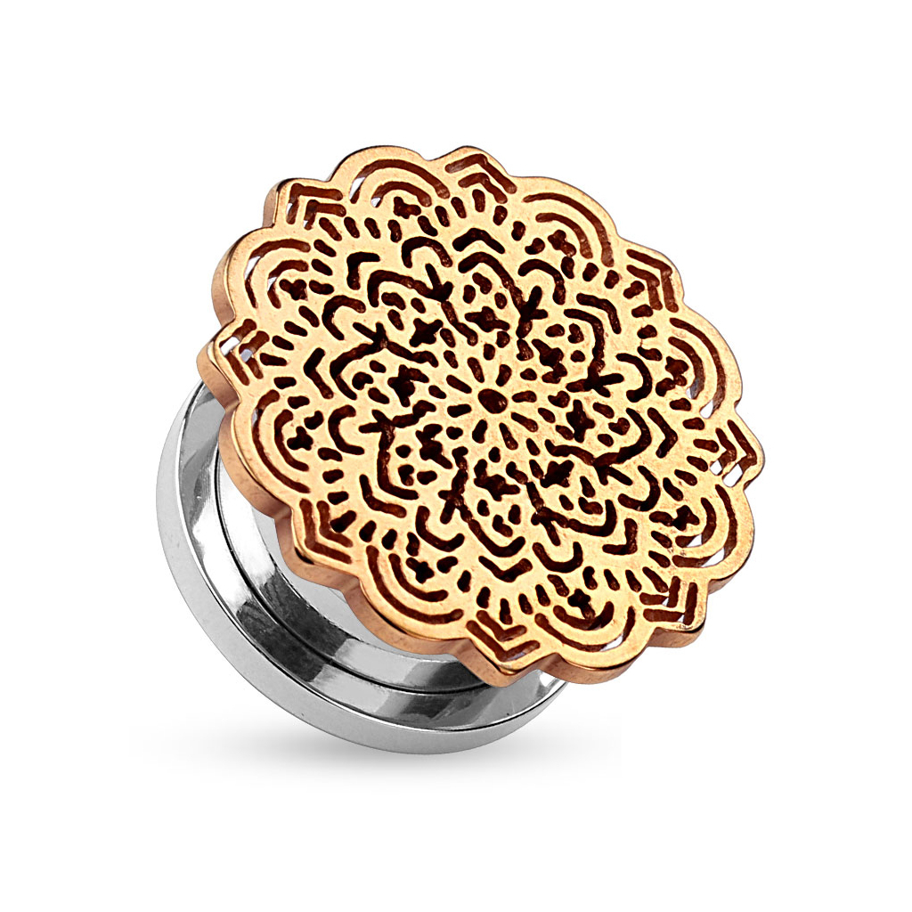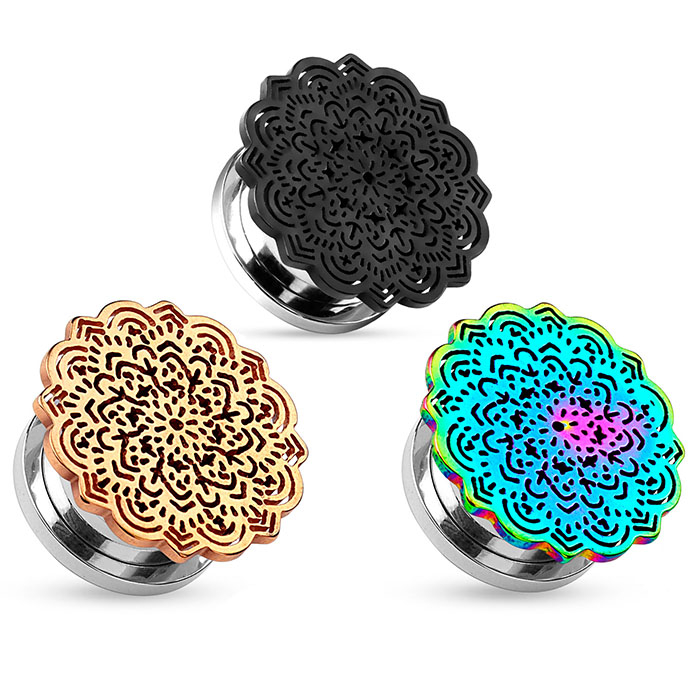 Dê um toque espiritual significativo ao seu alargamento com esse túnel, que tem uma linda mandala como superfície. A mandala carrega em si um forte símbolo, uma vez que mandalas representam o círculo da vida que inclui amigos, família e toda a sociedade. Mandalas têm fortes significados espirituais e foi usada primeiramente por povos hindus como um símbolo espiritual.