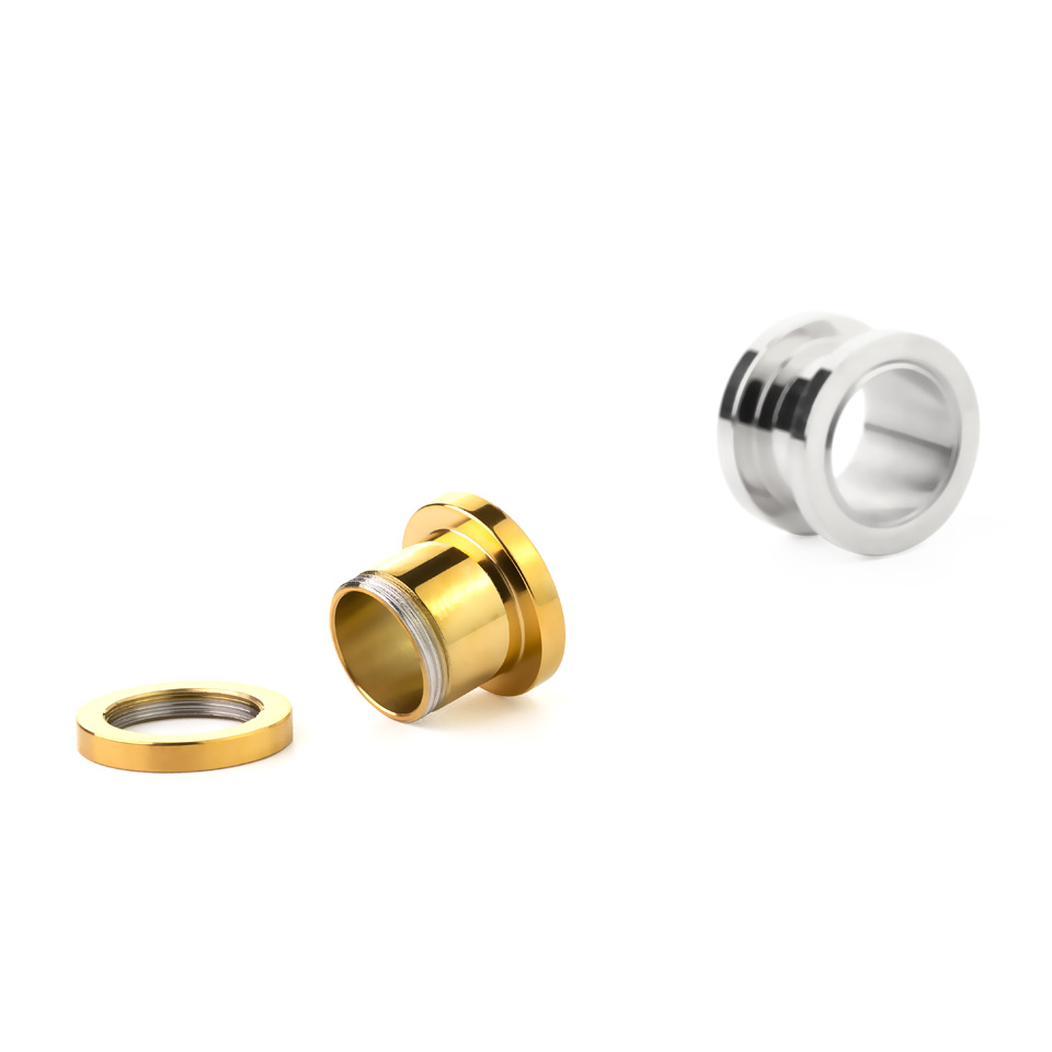A joia é equipada com uma rosca no lado traseiro o que facilita a aplicação da joia em seu alargamento. A parte traseira da rosca é retirada para que você possa inserir a joia pela frente e uma vez que essa está em seu lugar você pode encaixar as duas partes da rosca. Além disso você encontra esse túnel em uma grande variedade de tamanhos, portanto basta você escolher o seu tamanho e cor desejada e encomendar o seu túnel.