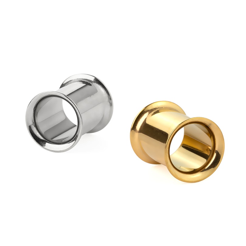 Aqui você encontra um lindo túnel feito de aço cirúrgico que é um material muito cirúrgico. Esse modelo é o chamado double flare, o que significa que tem cantos mais elevados em cada extremidade. Isso faz com que a joia se segure bem na orelha sem perigo de cair novamente. Você pode escolher se quer o seu lindo piercing novo nas clássicas cores brilhante ou preto. Com o modelo brilhante não tem como errar se quer um modelo simples e que não sai de moda, enquanto a variante preta proporciona um pouco mais de estilo mantendo-se ainda clássico.