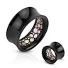 Já podes adquirir este túnel bonito e prático, feito em acrílico preto e com um interior super lindo. A joia é côncava para se ajustar melhor ao teu alargamento e está disponível em vários tamanhos. Escolhe o tamanho que desejas, desde os 8 mm até aos 25 mm de diâmetro.