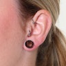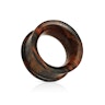Este túnel é feito de madeira rosa e tem o formato chamado de "double flat flare", o que significa que a joia tem duas bordas mais altas e uma superfície recta na região que fica na orelha. A parte interna dessa joia é côncava, o que quer dizer que ela é levemente curvada para dentro.