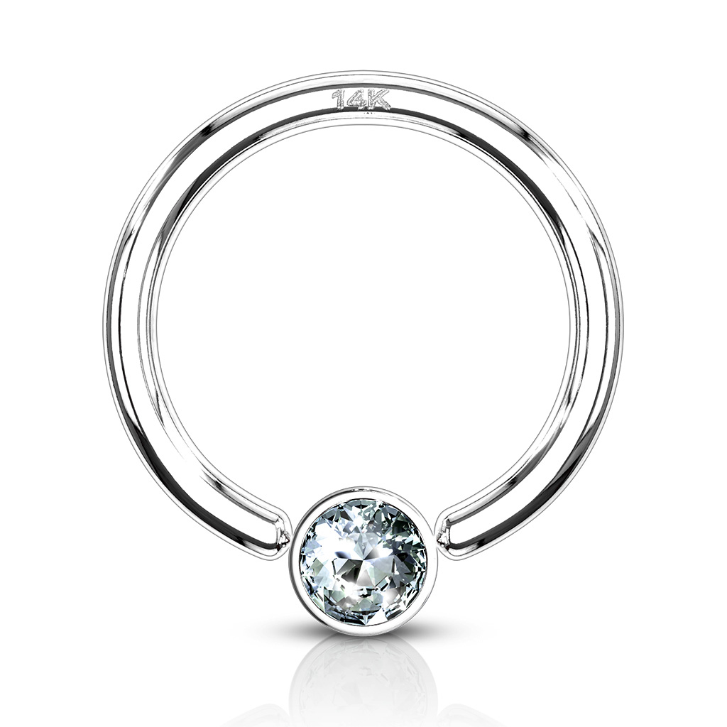 Esta argola tem uma espessura de 1,2 mm e um diâmetro de 8 mm; portanto, poderás utilizá-la em qualquer piercing, que tenha estas medidas. De modo geral, as argolas CBR fornecem várias opções de utilização, cujo único limite é a imaginação.