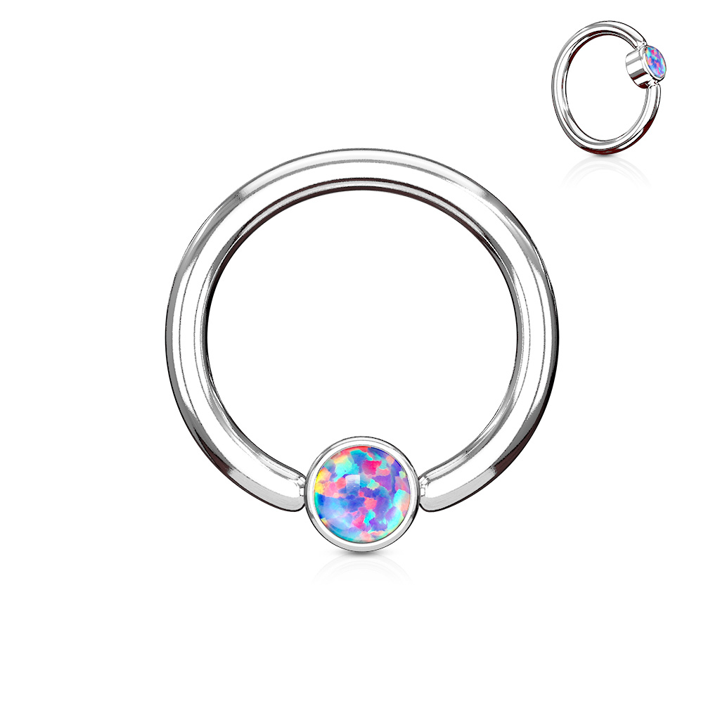 Esta argola parece igual à maioria das outras argolas de perfuração comuns - a única diferença é a própria bola, que não é redonda, mas cilíndrica. Isto faz com que a pedra opala sentada na frente pareça levemente plana. Ao mesmo tempo, isto também significa que a pedra opala frequentemente aponta para o corpo se a jóia estiver plana contra a pele.A argola está disponível em várias cores, diâmetros e espessuras diferentes. Não é possível escolher o tamanho da bola, pois o tamanho das bolas seguirá o tamanho do argola. Então não receberá uma argola com 6mm. de grossura e bola com 3 mm - A bola será sempre maior do que a espessura da argola. Nas espessuras pequenas da argola, o cilindro é facilmente retirado da argola e facilmente inserido novamente. Porém, nas espessuras maiores, pode é boa ideia abrir com um alicate de argolas, pois uma espessura de anel grande combinada com um diâmetro pequeno pode ser difícil de abrir. O cilindro possui dois recessos nos quais as extremidades do anel devem ser pressionadas para baixo. A pedra de opala acima mencionada não é uma opala real, pois geralmente é muito frágil, portanto, não é muito adequada para o uso em jóias. A opala é sintética, tornando-a mais durável. Ao mesmo tempo, dificilmente conseguirá ver a diferença entre uma opala sintética e uma opala real.