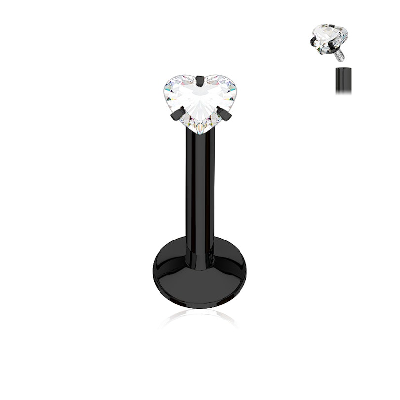 Os labrets são um dos tipos de joia mais versátil para utilizar em vários piercings. O labret da imagem tem a vantagem de estar disponível em vários modelos e cores. Poderás escolher a cor da barra e o modelo do topo