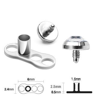 Nesse pacote encontra um conjunto de 25 âncoras dérmicas, com 25 bases de titânio puro e 25 topos de aço cirúrgico com pedras claras. Pode escolhre se quer os seus topos de 3, 4, ou 5 mm. de diâmetro.