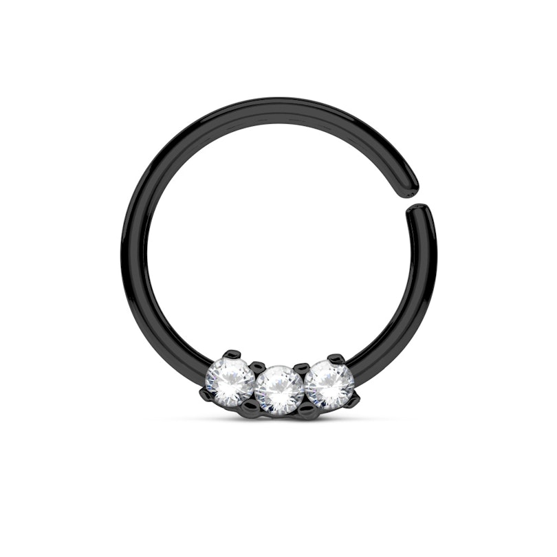 Geralmente joias para o septo são grandes e atrativas, a menos que use um anel com bola comum ou anel segmentado. Mas assim que a joia envolve pedras, essa torna-se grande e volumosa. No entanto, esye não é o caso detse piercing septo que mesmo com seu design pequeno e delicado tem pedrinhas no meio da joia.