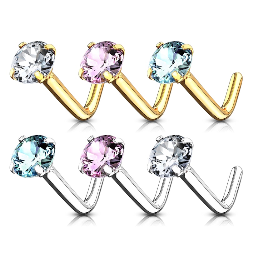 Nome: Nariz piercing de ouro 14 quilates com pedra redonda.