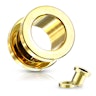 A joia é equipada com uma rosca no lado traseiro o que facilita a aplicação da joia em seu alargamento. A parte traseira da rosca é retirada para que você possa inserir a joia pela frente e uma vez que essa está em seu lugar você pode encaixar as duas partes da rosca. Além disso você encontra esse túnel em uma grande variedade de tamanhos, portanto basta você escolher o seu tamanho e cor desejada e encomendar o seu túnel.