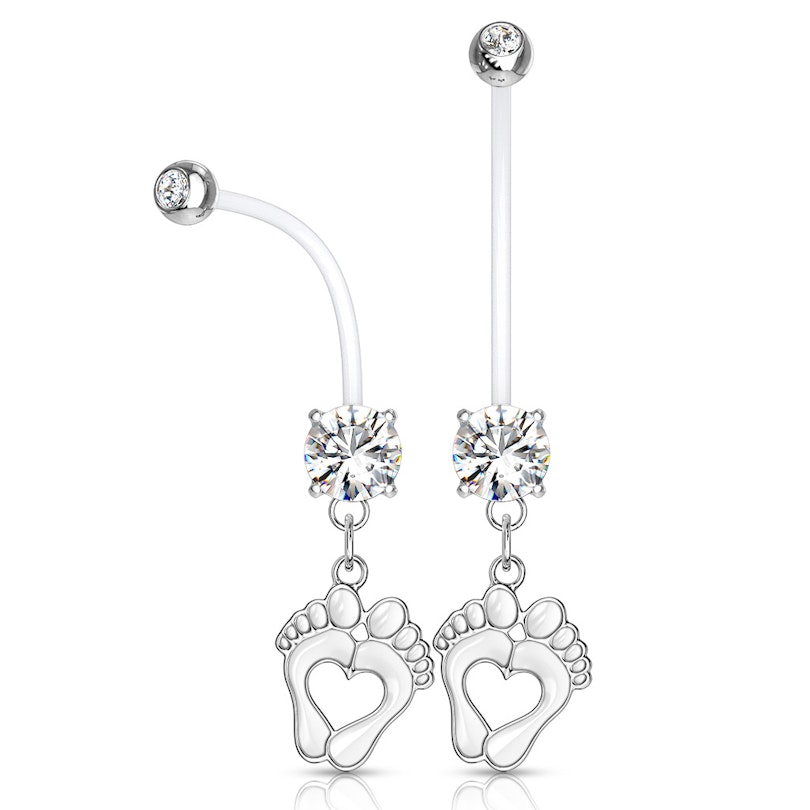 Nome: Umbigo piercing com pendente pézinhos de bebé para grávidas