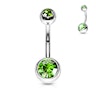 Umbigo piercing de aço cirúrgico com duas pedras coloridas em várias cores.