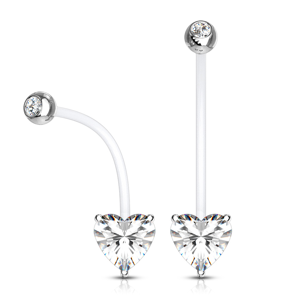 Umbigo piercing de grávida em PTFE com coração de pedra