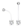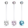 Como pode ver na imagem, a joia está disponível em três cores diferentes: a barra flexível está decorada com uma bola superior com configuração de bisel e uma pedra inferior com configuração de garra. Pode escolher a cor dessas pedras.